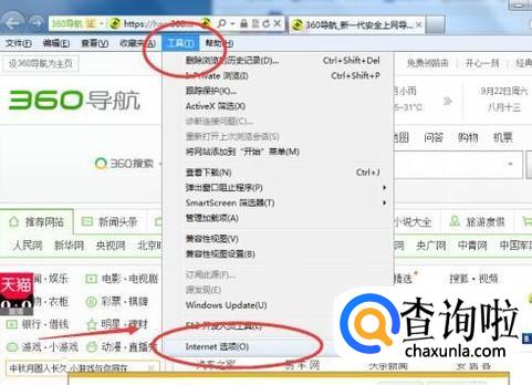 在弹出的下拉菜单中选择【Internet选项】选项,如下图所示: