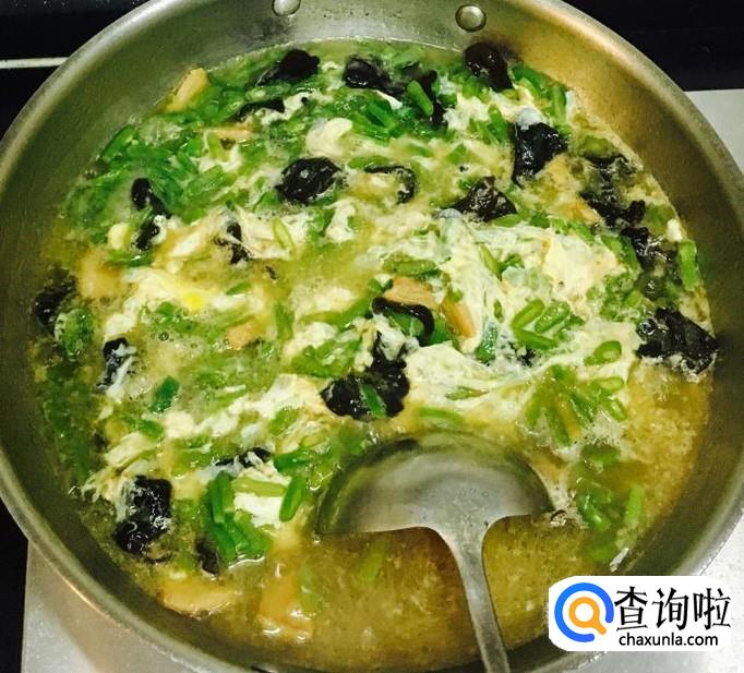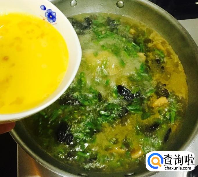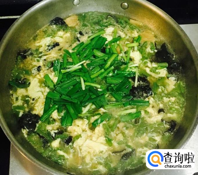 煮至豆角断生后均匀的淋入鸡蛋液,用汤勺轻轻推散使蛋液成熟关火,撒入韭菜段再次搅拌均匀即可