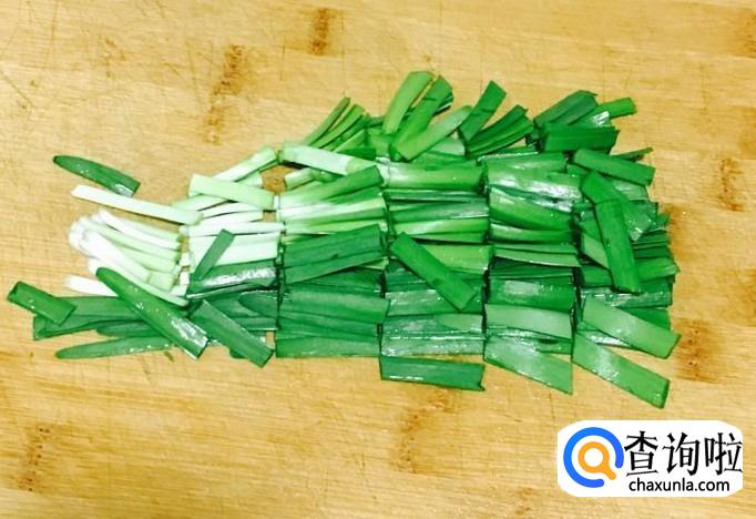 大葱剥去外皮、韭菜择去老叶清洗干净分别切成葱花、韭菜段,五花肉用温水冲洗干净后切成厚薄均匀的五花肉片