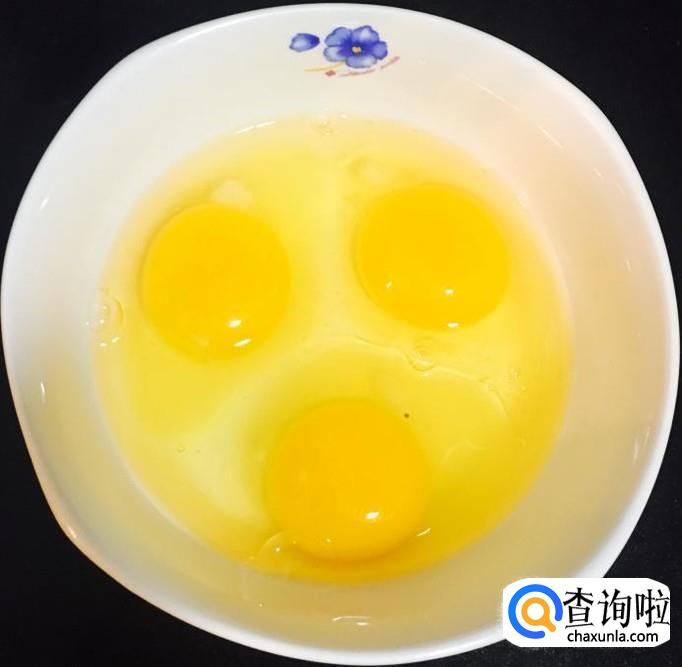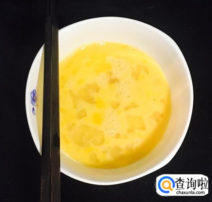 鸡蛋三个清洗干净外壳打入碗中用筷子搅拌均匀成鸡蛋液