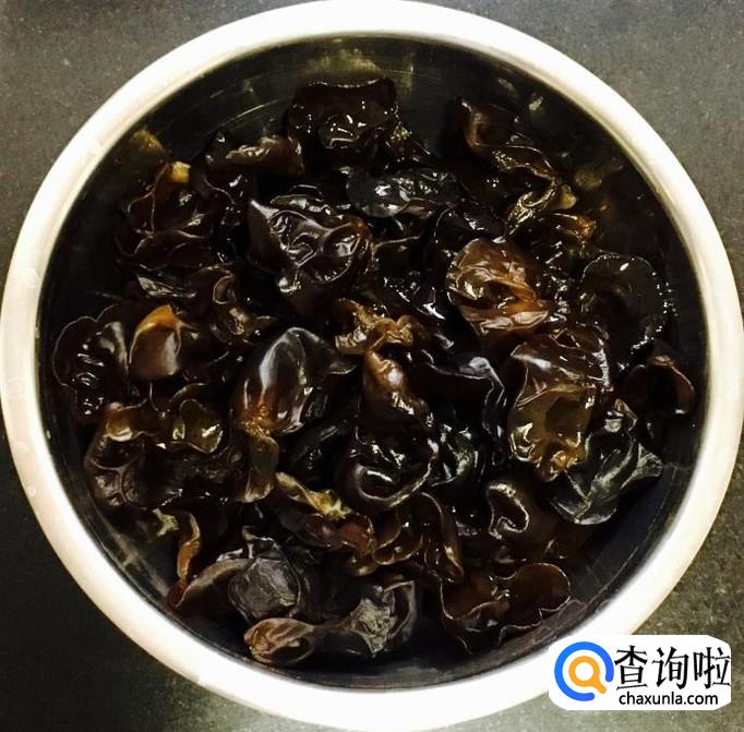 取适量的木耳放入容器中用凉水泡发5个小时左右,择洗干净根部的杂质后撕成小朵