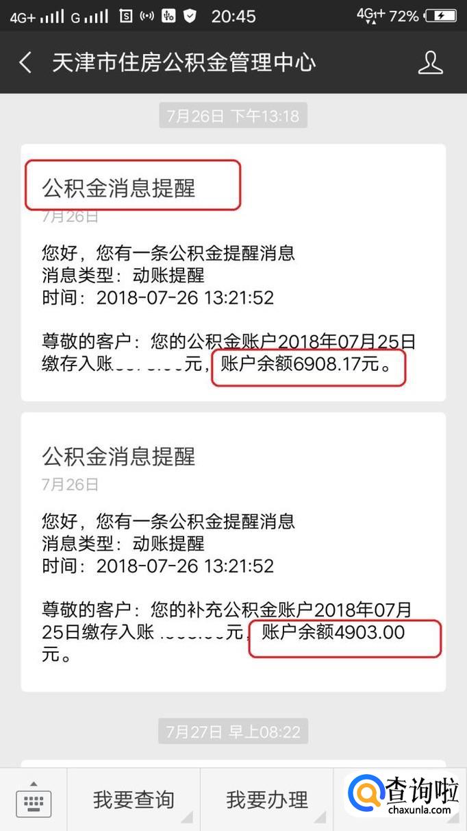 用微信关注公积金管理中心还有个好处,就是账户有变动的时候,微信会第一时间发消息提醒,这样,公积金到账的同时,其实你打开微信消息就能看到自己的余额了。