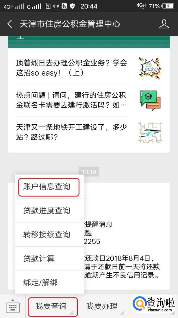 然后进入公众号,点击“我要查询”,然后点击“账户信息查询”,输入账号密码就能看到公积金余额了。