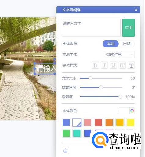 你可以添加你想写的话,以及进行字体和透明度等设置。