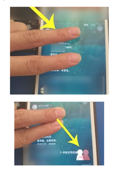 4、在评论区页面,两个手指放置在评论区位置,往中间滑动,这样就触发抱抱特效了。