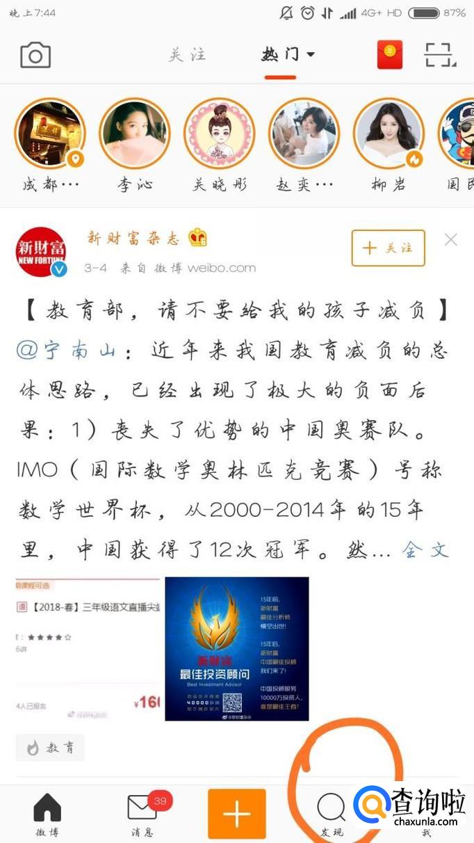点击页面下方的“发现”,如下图所示