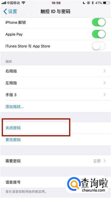 接着点击关闭密码,如下图所示。