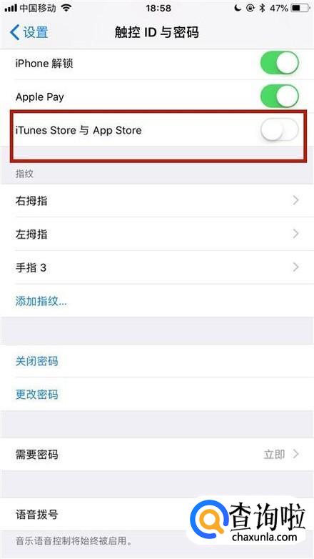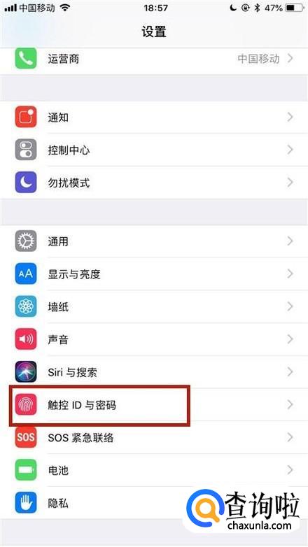 然后点击触控id与密码,如下图所示。