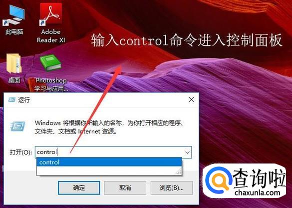 首先以安全模式登录进win10系统,打开运行界面,在命令行中输入control命令,如下图所示