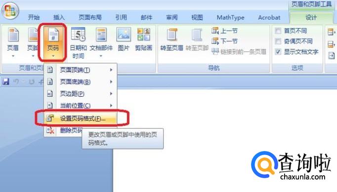 我们假设目录页有多页,所以没目录页面需要设置另一种页码格式。打开文档,双击页脚区域进入编辑,点击工具栏“页码”,下拉菜单中选择“设置页码格式”。