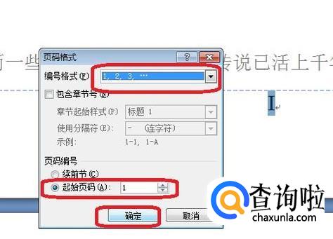 此时正文第一页页码变为了罗马数字格式“I”,我们选中它,然后按照步骤1和2,调出“页码设置”,并设置页码为“1,2,3...”的形式,起始页码为1。