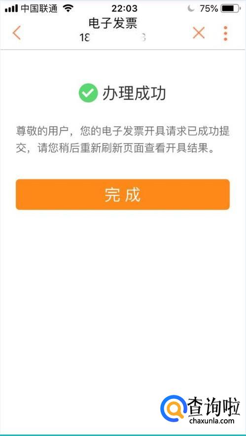 如图,电子发票的请求已经办理成功,等待电子发票发送到提交的邮箱后,我们就能把发票打印出来了。