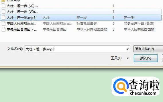 然后选择一个音乐并点击插入,如下图所示。