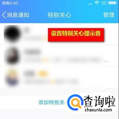 转到好友列表;在这些好友中选择特别关心的好友 。转到该好友的设置页面。再点“特别提示音”。