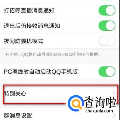 再转到设置页面,在这个设置中再点击“消息通知”;转到消息通知页面。在页面下方,我们即看到“特别关心”。