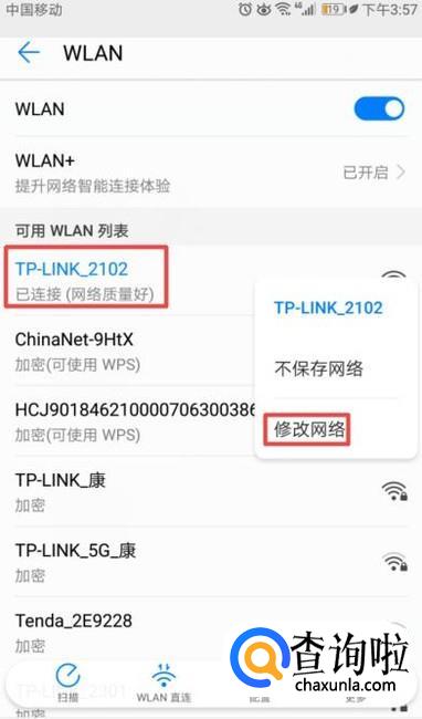 之后我们长按连接的无线网络,弹出的界面,我们点击修改网络;