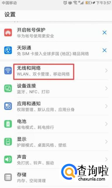 之后我们点击无线和网络;
