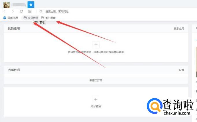 在千牛工作台的首页,我们看到左上角有“宝贝管理”和“客户运营”两个菜单按钮,这里是为了方便我们管理订单和客户信息的。
