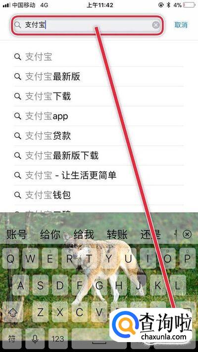 然后键入支付宝并点击搜索,如下图所示。