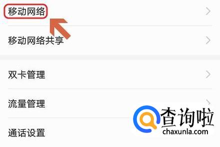 点击之后在新页面中点击“移动网络”,然后将其右侧的开关打开既可以上网了;