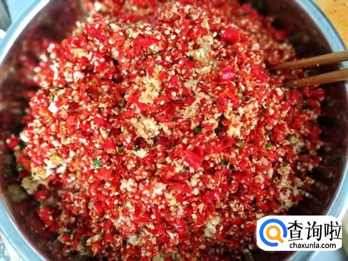 将制做好的剁辣椒装坛。剁辣椒保存时间也不宜太长,时间太长,新鲜辣椒味就散了。
