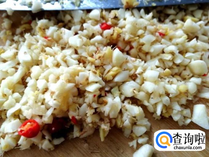 大蒜加少许姜剁碎。