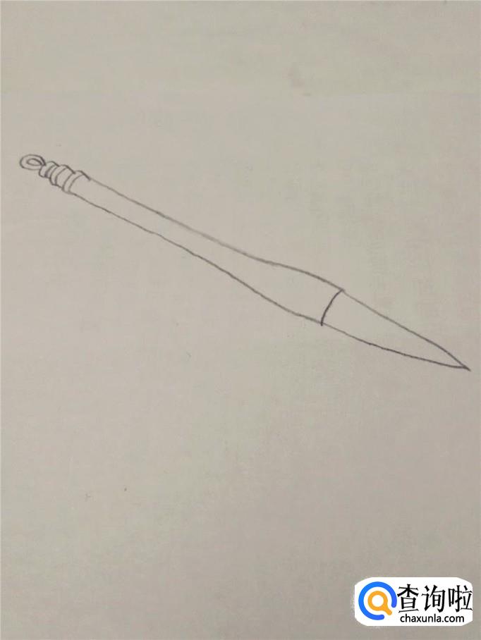 在笔杆下面,再画一个长长的三角形,表示笔头。