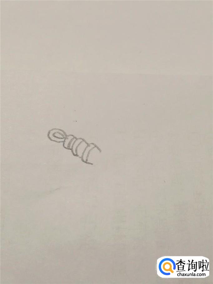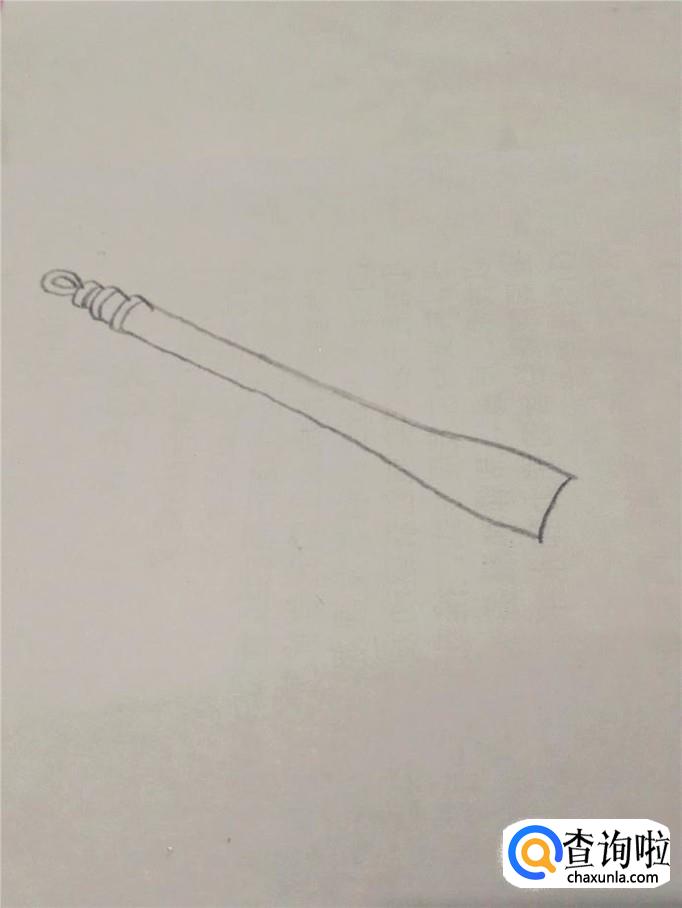 先用笔在纸上画一个大的椭圆形,里面套着一个小的椭圆形,这两具椭圆形表示笔杆上的绳套。