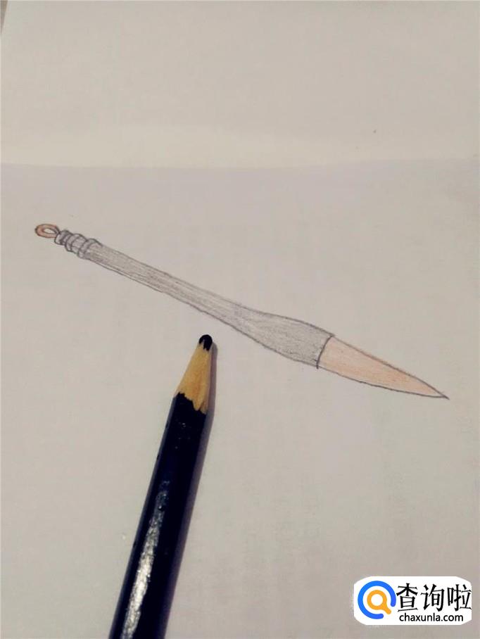 用黑笔把笔杆涂成黑色,毛笔就画完了。