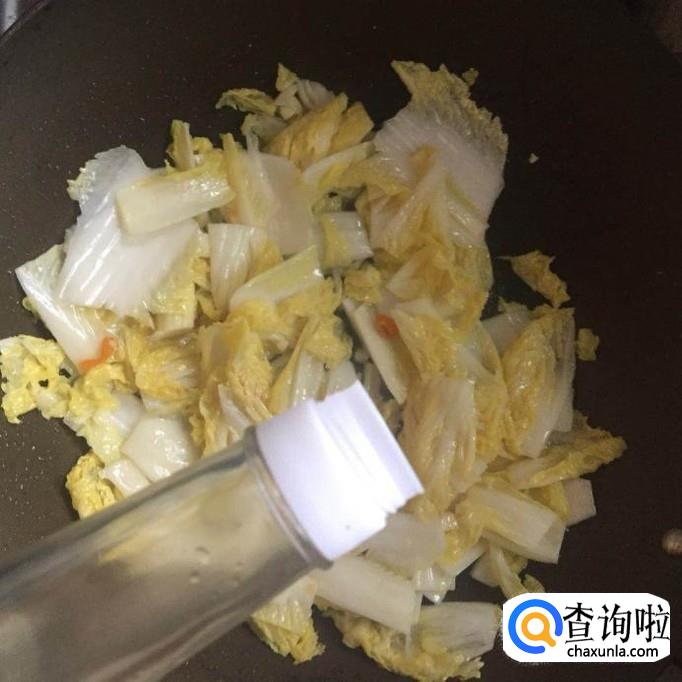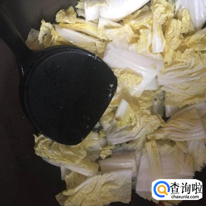 接着把白菜倒入锅中翻炒五分钟,如下图所示。
