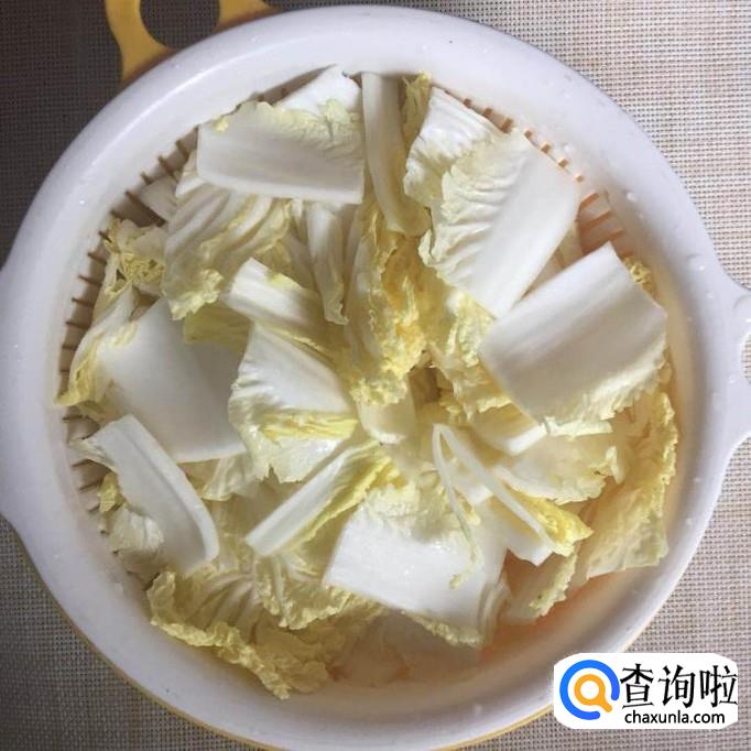 然后把白菜控干切成小块,如下图所示。