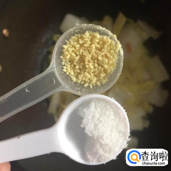 接着往锅中加入适量的盐巴和味精,翻炒片刻就可以出锅了。
