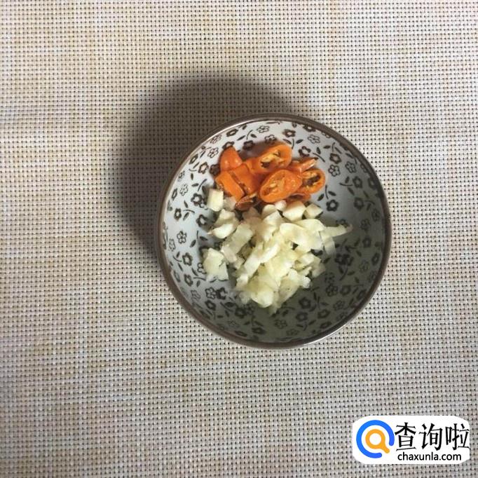 首先将蒜头和辣椒切成沫,如下图所示。关于辣椒的选择,小编建议大家选择朝天椒会比较好。