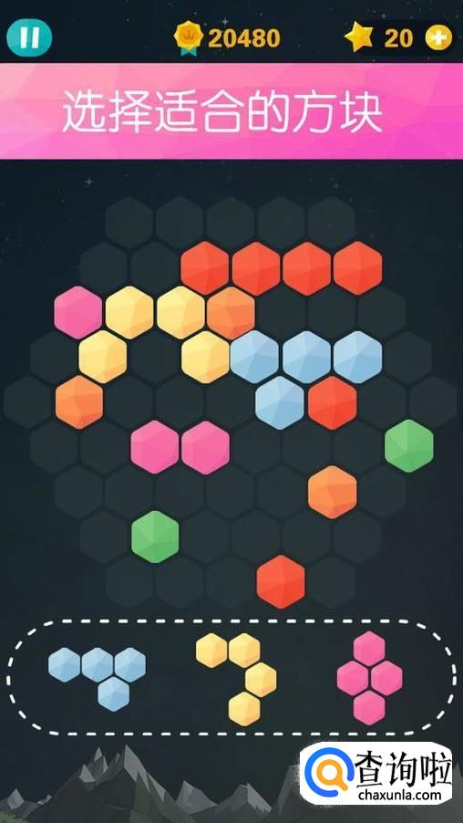 在六角消除中要想获得高分的话,在有单块小方块的时候,要先对其他不规则的图形进行移动,不要先移动单块的。