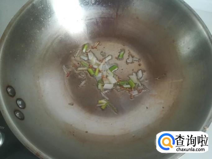 炒锅放花生油,等油五成熟时,把葱姜入锅炝一下,制成葱油。