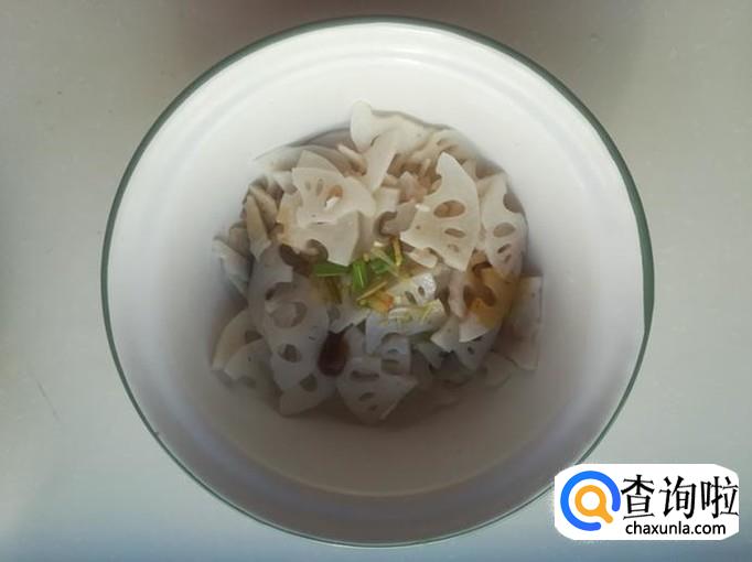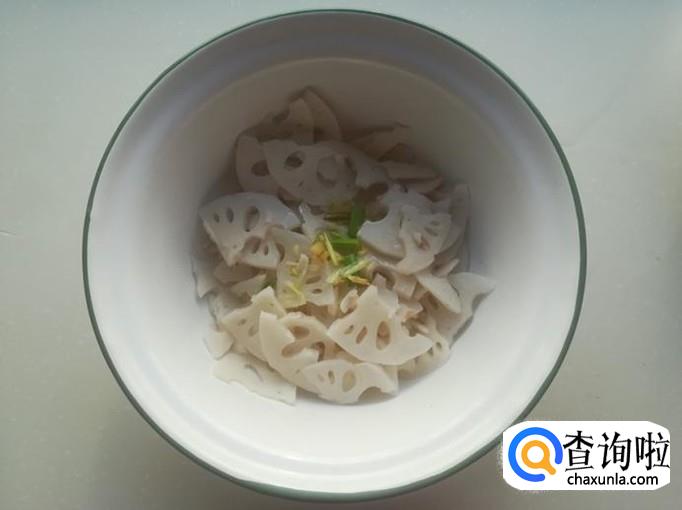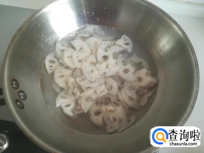 再把莲菜片放开水锅里焯一下水,焯的时间不能太长,否则就不脆了。