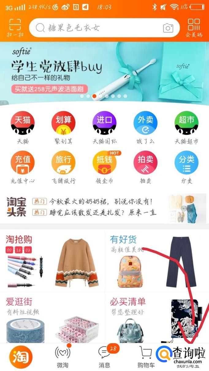 点击右下角“我的淘宝”选项,如图1箭头所示。会出现一个新的界面,如图2所示。
