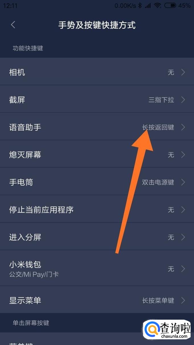 设置一个操作,唤醒小爱,例如选择长按返回键