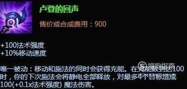还有一种打法是ap装核心爆发流,核心是卢登的回声,提供移速和爆发,如图所示。