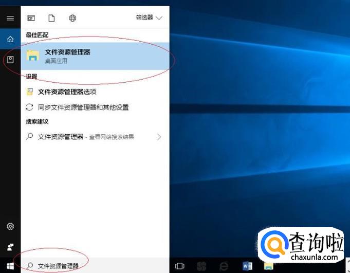 如图所示,搜索框输入"文件资源管理器"。Cortana(小娜)显示搜索结果,点击"最佳匹配→文件资源管理器"项。