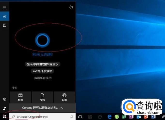 启动Windows 10操作系统,如图所示。点击任务栏搜索框,开始使用Cortana(小娜)智能语音助理。