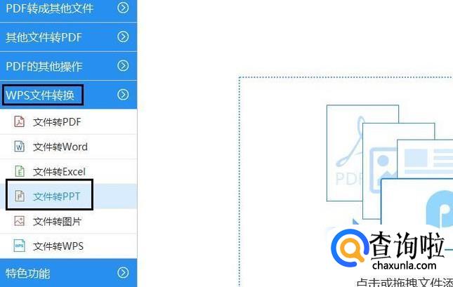 因此小伙伴们先要在自己电脑桌面上安装份转换器工具,然后鼠标双击将其给打开。打开后,进行转换功能的选择,鼠标左击界面左边的【WPS文件转换】选项,接着再点击下方跳出的【文件转PPT】选项。