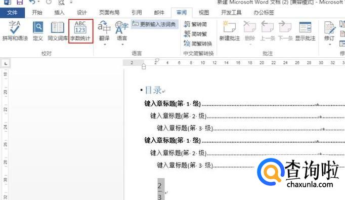 点击“审阅”-“字数统计”菜单。