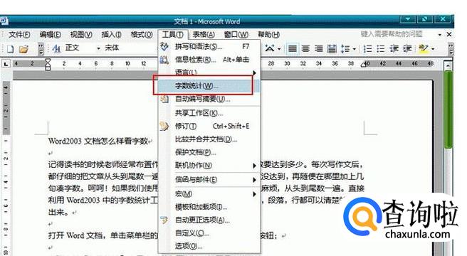 word2003版本的话,单击菜单栏的“工具”,选择“字数统计”按钮即可。