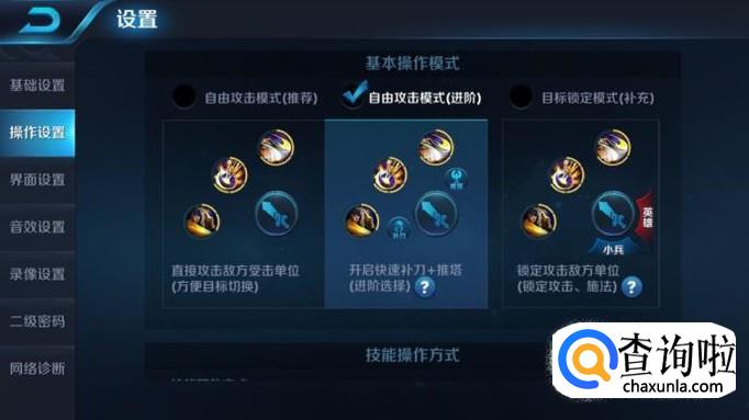 进入以后,我们会看到一个“操作设置”,点击它,(如图所示),然后我们会看到有三个操作模式,一般高手回选择第二种或者第三种。