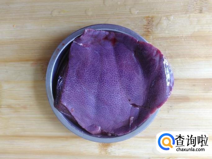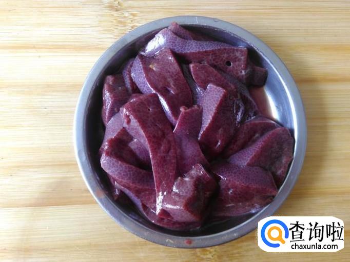 首先把猪肝清理干净,然后切成厚片。【因为猪肝容易熟,熟得太老的猪肝会变硬,所以猪肝切厚点就没那么快熟】