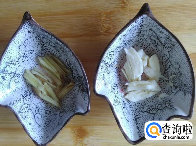 姜丝、蒜米准备好。