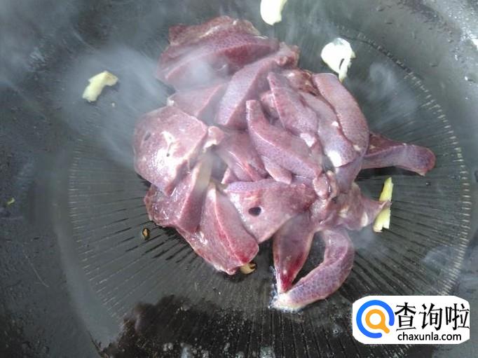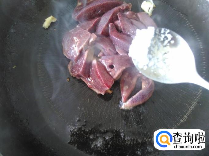 猪肝下锅。