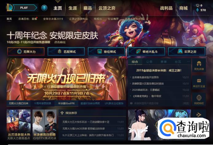首先打开英雄联盟,进入英雄联盟游戏界面,:
