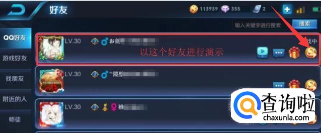 点击该好友头像右侧的金币符号。
